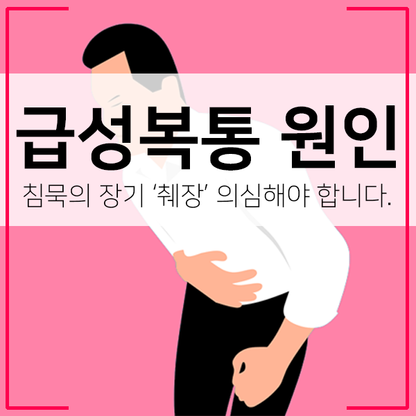 특히 통증이 갑자기, 극심하게 발현되는 경우 장염이나 가벼운 위장장애로 간과하고 넘어가지 않아야 합니다.